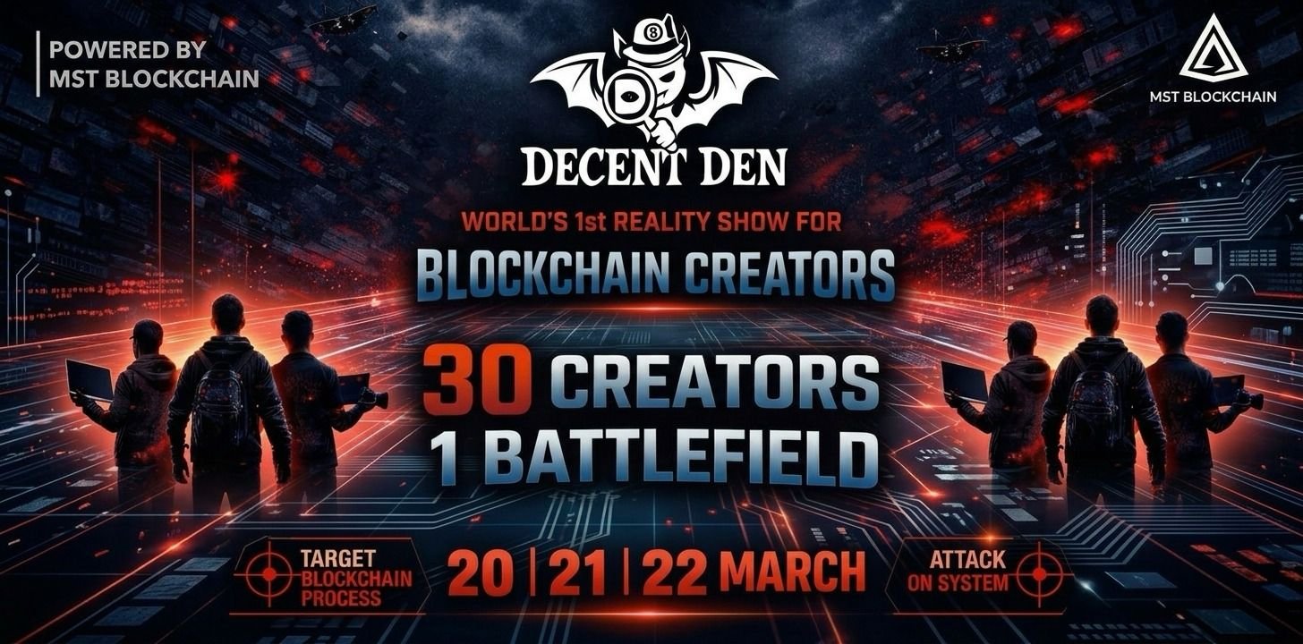 Decent Den, the world’s first Blockchain Reality Show, is set to take place from 20th 21st and 22nd in Indore, bringing together 30 top Web3 creators in a high-intensity, competitive format inspired by global hits like Bigg Boss, Indian Idol, American Idol, and Beast Games – but with a revolutionary twist: powered by MST blockchain.