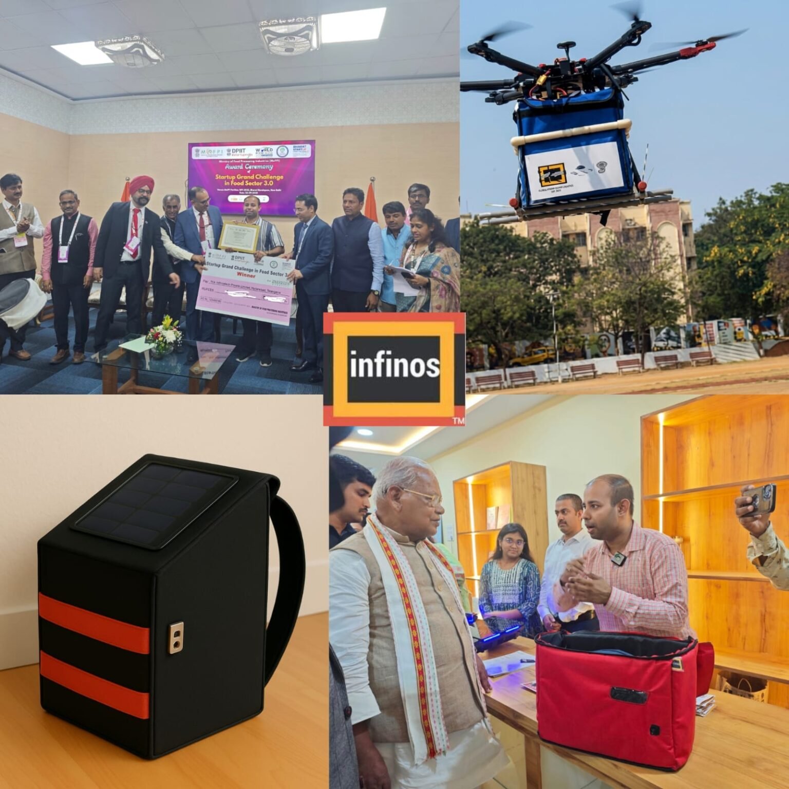 Hyderabad‑based Infinos Tech Pvt. Ltd. is building exactly that: a family of drone‑enabled, AIoT‑controlled smart containers engineered for multi‑temperature payloads, long backup, and low‑loss delivery of commercial and humanitarian goods.[startuptimes][youtube]