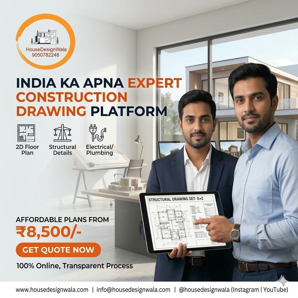 | Basic Package | Essential Planning & Drawings FOR IMMEDIATE RELEASE March 2026 | New Delhi, India HouseDesignWala India Ka Apna Expert Construction Drawing Platform From Floor Plan to Structural Drawing — All Online, All Affordable: HouseDesignWala Makes Expert House Design Accessible to Every Indian |